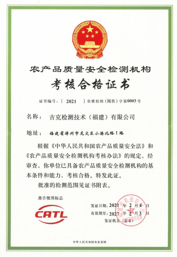 吉克檢測技術(shù)(福建)有限公司,位于福建省漳州市龍文區(qū)小港北路1號(hào),于2019年8月注冊成立,是一家獨(dú)立的第三方檢測公司。公司已經(jīng)通過檢驗(yàn)檢測機(jī)構(gòu)計(jì)量認(rèn)證(CMA)、農(nóng)產(chǎn)品質(zhì)量安全檢測機(jī)構(gòu)資質(zhì)認(rèn)證(CATL),獲得中國合格評(píng)定國家認(rèn)可委員會(huì)(CNAS)認(rèn)可。公司本著“嚴(yán)謹(jǐn)、規(guī)范、高效、協(xié)作”的原則和對(duì)客戶及社會(huì)高度負(fù)責(zé)的精神,充分利用本公司優(yōu)質(zhì)的檢測環(huán)境、先進(jìn)的檢測設(shè)備和專業(yè)的技術(shù)人員,第一時(shí)間為客戶提供科學(xué)、公正、準(zhǔn)確的檢驗(yàn)檢測報(bào)告。 公司實(shí)驗(yàn)室面積1100多平方米,儀器設(shè)備兩百多臺(tái)(套),固定資產(chǎn)一千多萬元,在職員工31人,技術(shù)人員中的中高級(jí)職稱及同等能力人數(shù)占60%以上。我們的服...